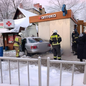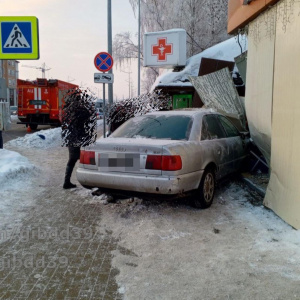 В Гурьевске "Ауди" вылетела на тротуар и протаранила аптеку, вжав пешехода в стену - пострадавшую вытаскивали спасатели МЧС
