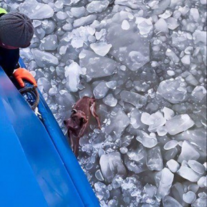 Лоцмейстерский катер «Фортуна» следовал в сторону посёлка Рыбачий для пополнения запасов, когда моряки заметили движение у самой кромки льда. За бортом, в холодной воде, отчаянно барахтался пёс. Животное металось между ледяными торосами, пытаясь выбраться на поверхность, но силы стремительно покидали его.